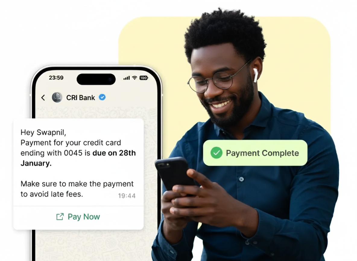 Send automated reminders to customers for bill payments, loan EMIs, and policy renewals via WhatsApp.